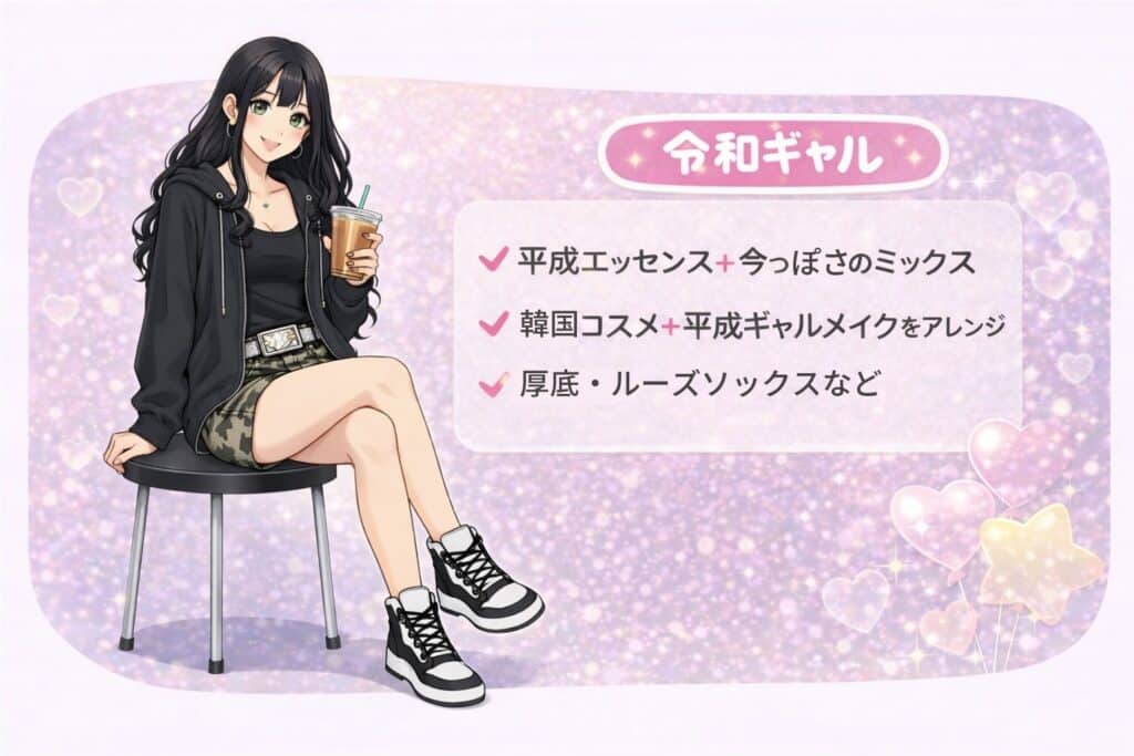 平成ギャル世代の子どもたちがティーンになったタイミングと重なり、SNS中心に「令和ギャル」が定着。90年代の完全再現ではなく、平成エッセンス+今っぽさのミックスが主流です。